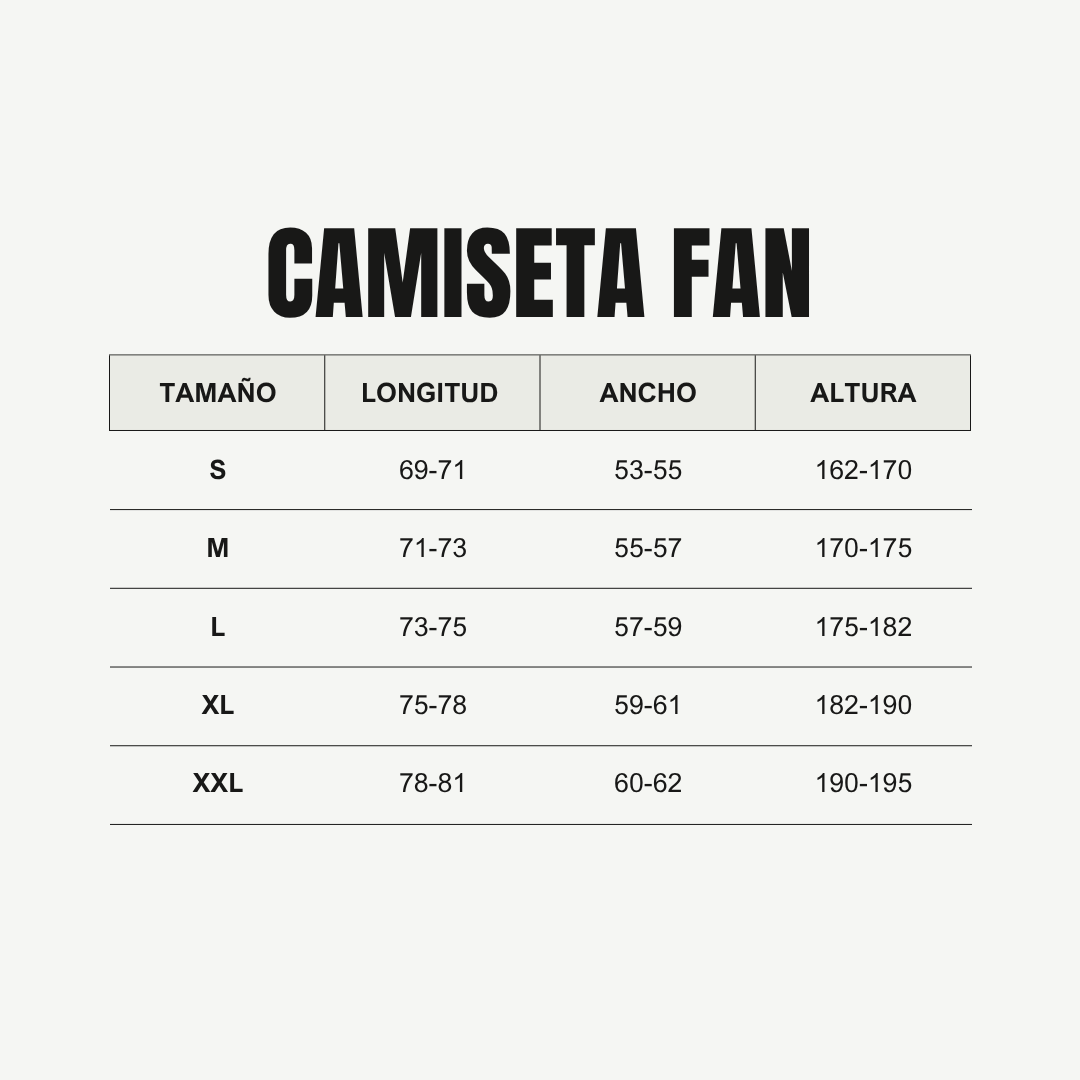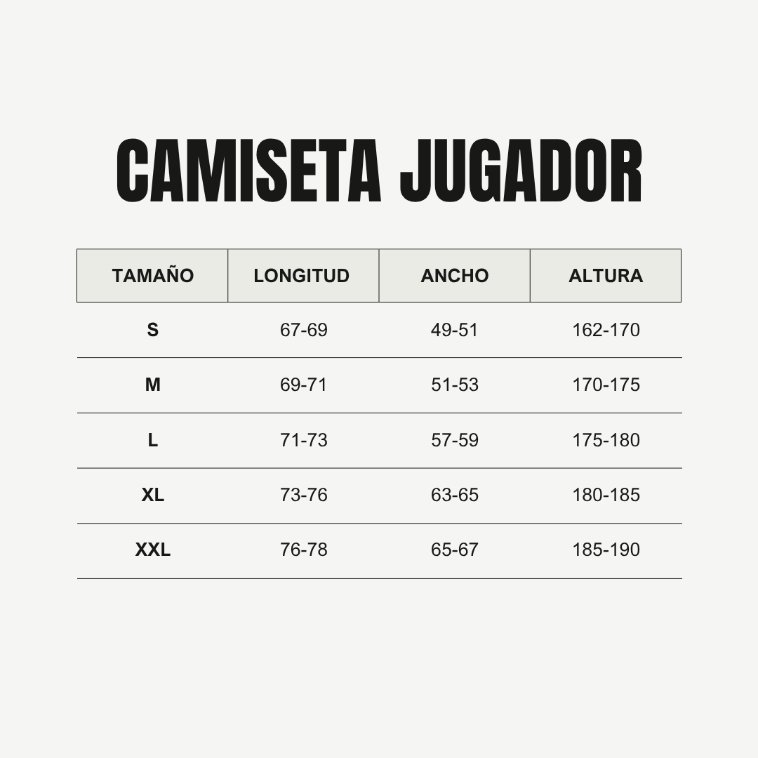Al completar la compra de una camiseta con nombre y número, usted acepta que este artículo no se puede cambiar ni devolver, ya que ha sido personalizado especialmente para usted. Si tiene alguna duda sobre las tallas, consulte nuestra guía antes de confirmar su compra.